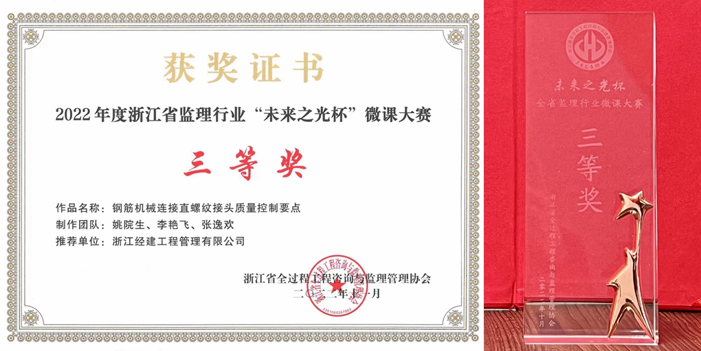 我公司榮獲2022年度浙江省監(jiān)理行業(yè)“未來(lái)之光杯”微課大賽三等獎(jiǎng)